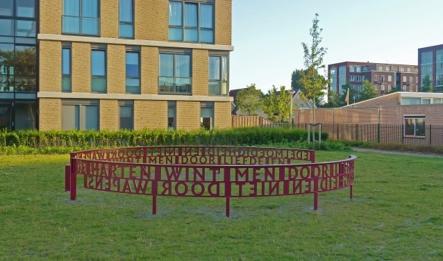Spinoza woonde op de grens van het huidige Westerhaghe in Rijnsburg. Zijn tekst “De harten wint men door liefde en edelmoedigheid, niet door wapens”, staat centraal in de cirkel – en zou symbool staan voor de diversiteit in de wijk en voor saamhorigheid. Het eerste deel van de zin is te lezen wanneer je buiten de cirkel staat, het tweede deel lees je in de cirkel.
