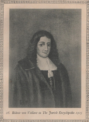 Zo had ik tot heden nog niet dit schilderijtje dat Wallerant Vaillant van Spinoza gemaakt zou hebben. Ik noteer eerst uit Ernst Altkirch’s Spinoza im Porträt (1913) dat hij deze afbeelding aantrof in The Jewish Encyclopedia [Volume XI. Samsom-Talmid Hakam, New York and London, Funk and Wagnalls Company MDCCCCV] met het onderschrift: “Baruch Spinoza. From an unpublished painting by Wallerant Vaillant, 1672 in the possession of Hon. Mayer Sulzberger, Philadephia.” In de encyclopedie was het in vierkleurendruk opgenomen. Ik ben de afbeelding echter nog nooit in kleur tegengekomen.