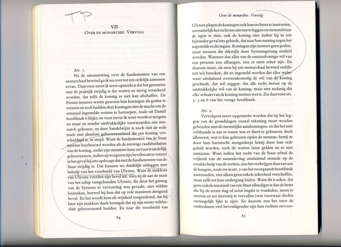 De vertaling van de Tractatus Politicus is van de hand van Wim Klever (Hoofdstukken uit De politieke verhandeling. Boom, Meppel, 1985)