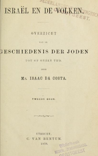 Na het vorige inleidende blog volsta ik in dit blog met het brengen van hetgeen Isaac da Costa schreef over Spinoza in Israël en de volken. Overzicht van de geschiedenis der Joden tot op onzen tijd. C. van Bentum, Utrecht, 11848, 21876.