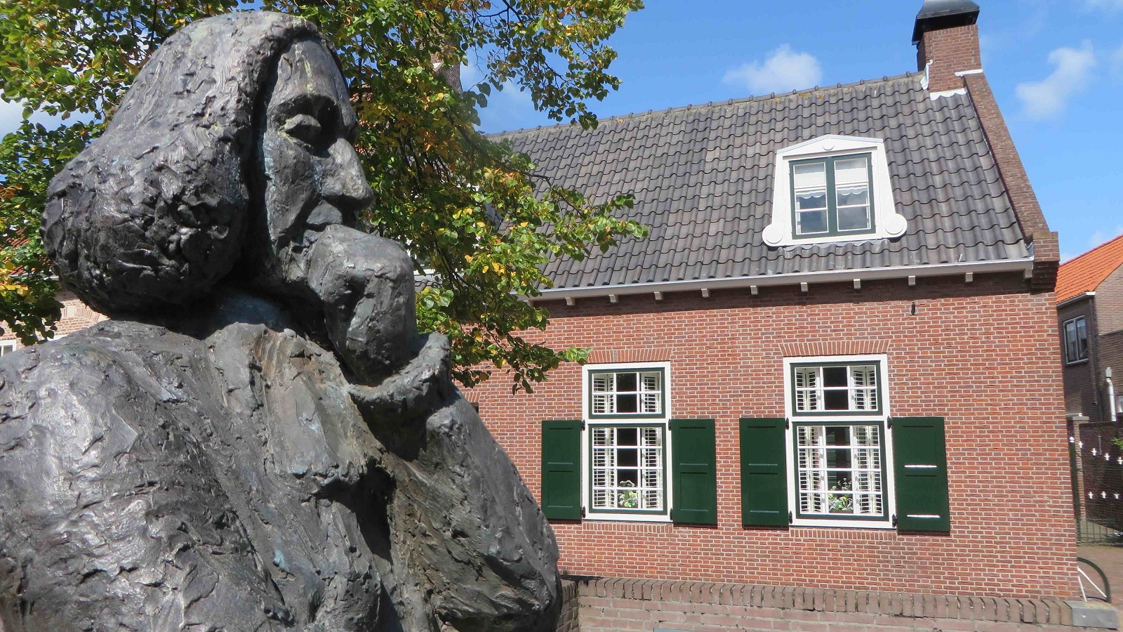 in Rijnsburg. Het bronzen beeld is gemaakt door de Katwijkse beeldhouwer Gerard Brouwer in opdracht van de Rabo-bank. Het beeld van 120 cm hoog werd in 1993 geplaatst bij Rabobank Rijndorpen, op de Vliet / Rapenburg te Rijnsburg. Cf. website Gerard Brouwer.